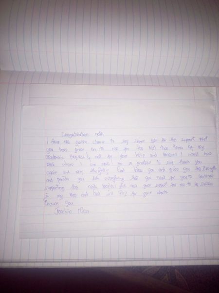 Er hat uns mittels Whats up ein Dankesschreiben übermittelt, indem er sich herzlichst bedankt und Gottes Segen für die Sponsoren schickt,das ich als Anlage angehängt habe .(leider bischen unleserlich durch die undeutliche Schriftfarbe ).