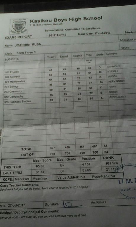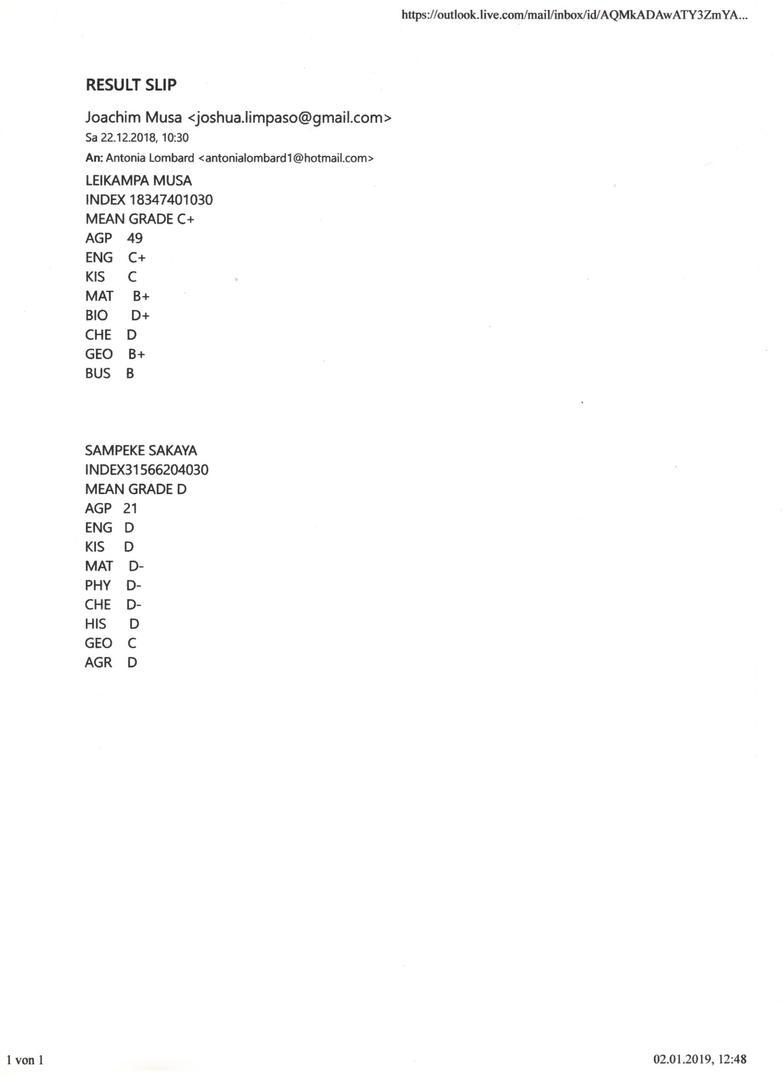 sehr dankbar und freuen uns mitteilen zu können, daß Joachim Musa sein erstes Studienjahr mit sehr guten Noten abgeschloßen hat.