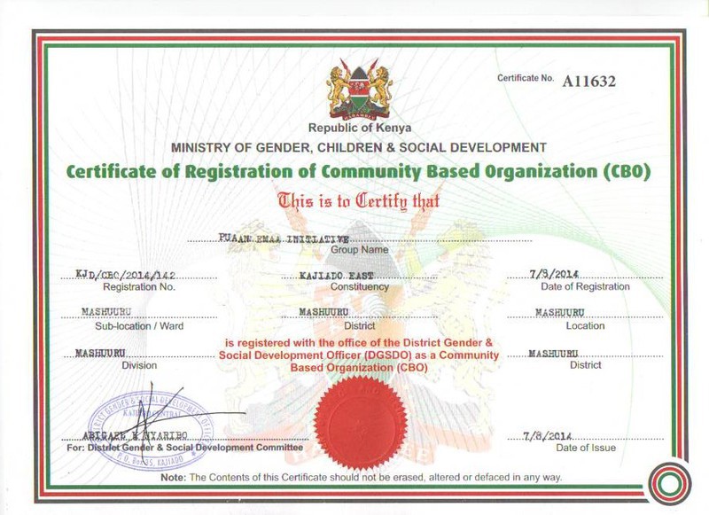 Registrierungsnummer KJD/cdo2/090762 Kenianische , Behörde